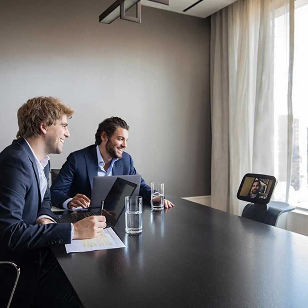 Erleben Sie mit temi eine außergewöhnliche Telepräsenz-Erfahrung, die Fernkommunikation auf ein neues Niveau hebt. Dank der hochauflösenden Videoqualität und der einfachen, intuitiven Bedienung vermittelt temi ein Gefühl der Nähe, als wären Sie vor Ort. Der integrierte Bildschirm zeigt während der Videokonferenzen hilfreiche Informationen in Echtzeit an, was die Interaktion noch effektiver gestaltet. Zudem ermöglicht temi, dass bis zu 15 Personen gleichzeitig an einem Meeting teilnehmen können, was ihn ideal für Teamkonferenzen und Meetings aus der Ferne macht.